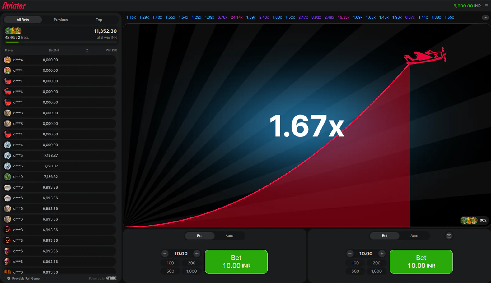 Aviator India is one of the most played crash games in the country, with over 50,000 active players daily across local online casinos. Developed by Spribe, the game is based on a provably fair algorithm, ensuring each round’s outcome is verifiable and random. Its popularity stems from the fast gameplay—each round lasts 8 to 30 seconds, and the maximum possible multiplier can reach x1,000.