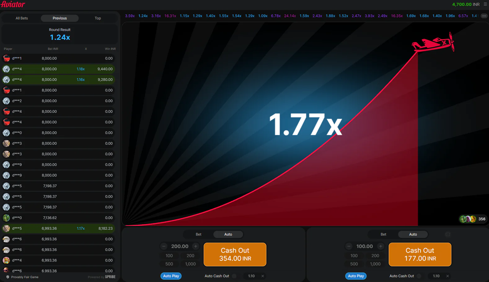 The Aviator game by Spribe is a great choice for those players from India who want to take part in action-packed gambling and be able to decide on their own when to cash out. With a double bet feature, you will have even more opportunities and interesting moments during the gambling process. The life-changing maximum payout in the Aviator game, which is x1,000,000 that the luckiest players can win, is at the top of it all.
